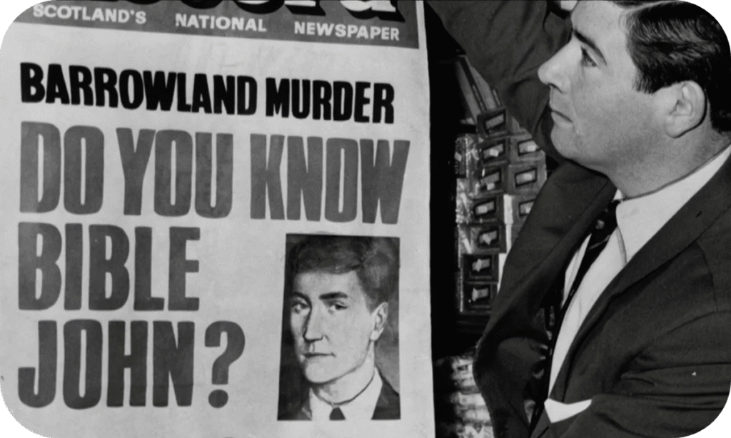 Case 98 Bible John. The Brutal Barrowlands Slayings. Glasgow 1968-69. A serial killer is on the loose and preys on women on the nightclub dancefloor.