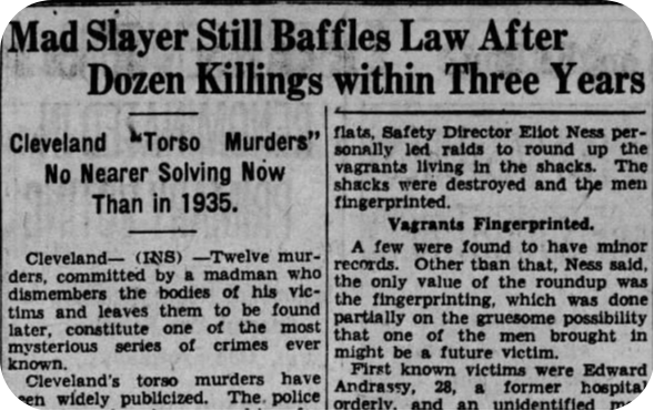 Case 101 Cleveland Torso Murders, Ohio 1934-38. A persistent serial killer of numerous innocent victims leaves a city in fear. What would it take to capture the perpetrator.